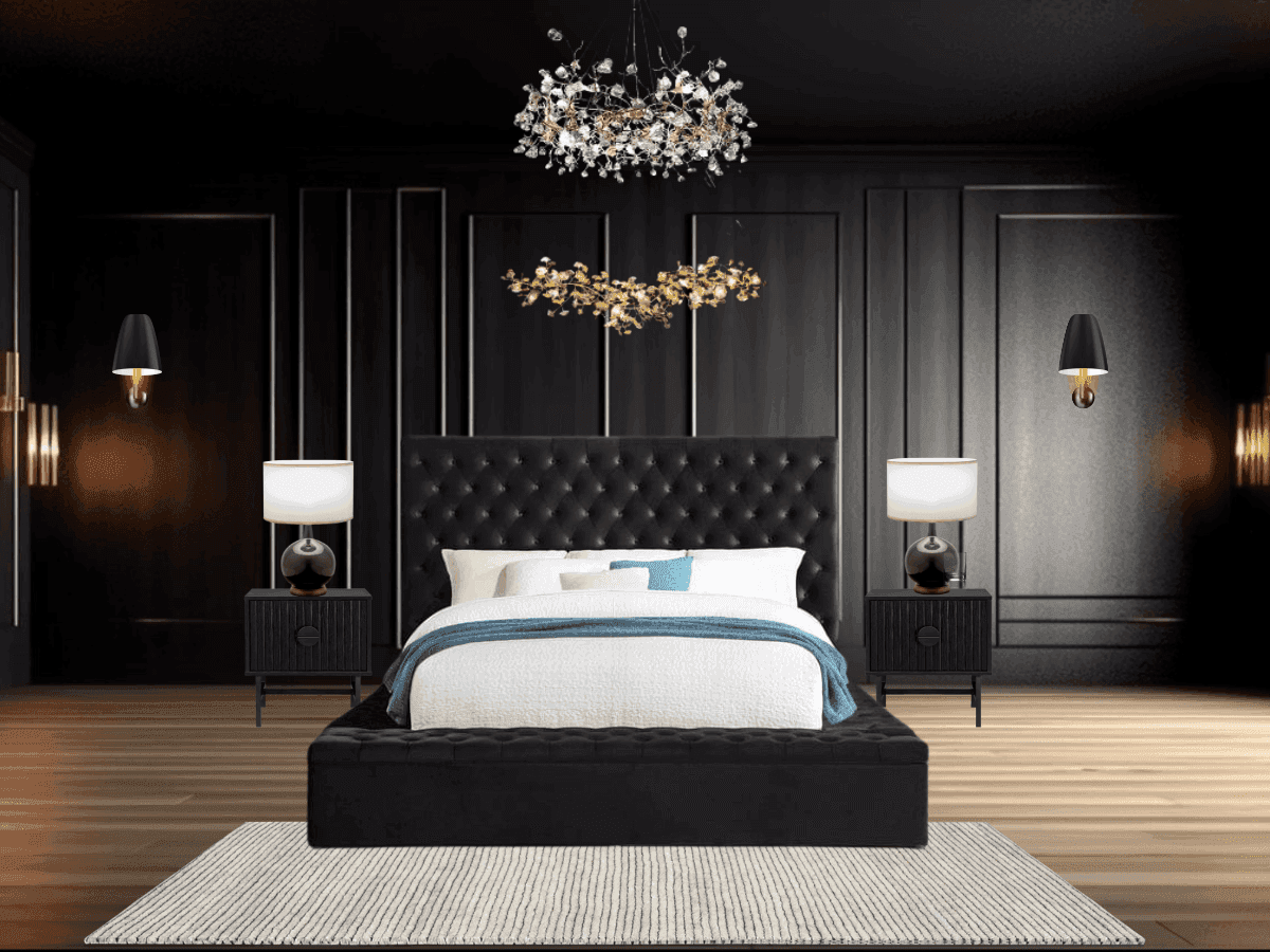 This bed is more than a place to sleep—it's a masterpiece of elegance that will redefine your bedroom. The grand headboard, with its intricate tufting and regal height, commands attention and adds a touch of majesty to your space. A seamless fusion of timeless elegance and modern luxury.